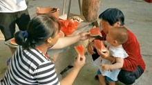 这个画面,仿佛让我回到了童年时光。那时候,爸爸也是这样抱着我,一边喂我吃瓜,一边给我讲故事。那时候的我们,无忧无虑,快乐得像个小天使。